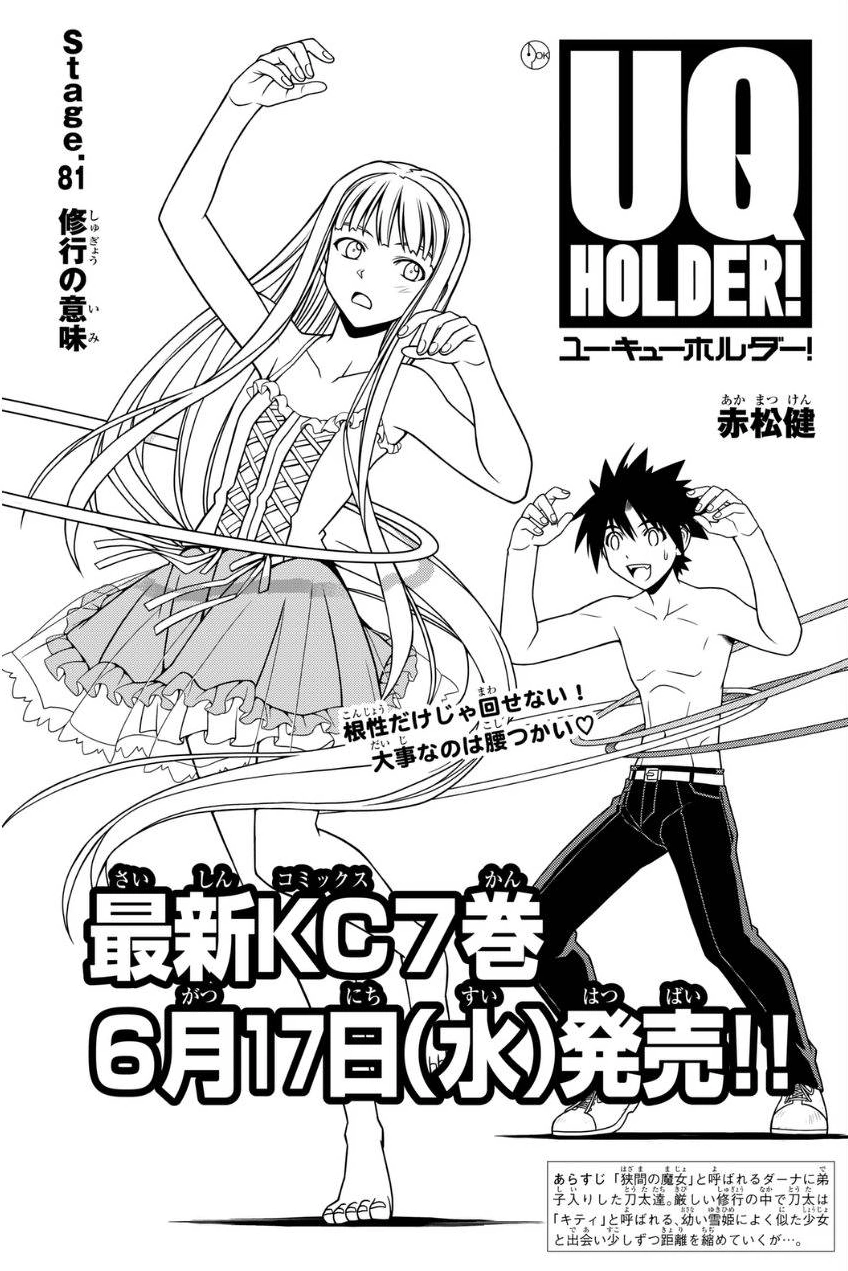 The Meaning of Training is the 81th chapter of the UQ Holder! manga written and illustrated by Ken Akamatsu.